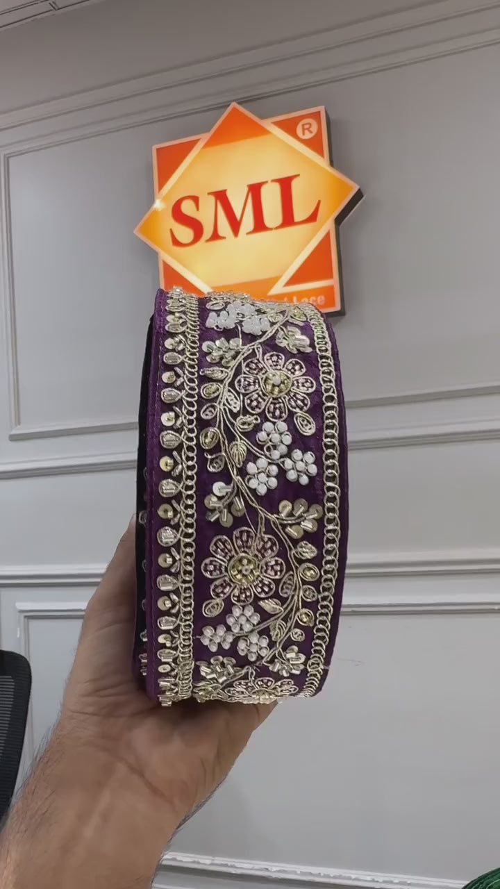 2.5 Inches Decorative Sequin Thread Embroidered (9 Meter) | Dark Maroon